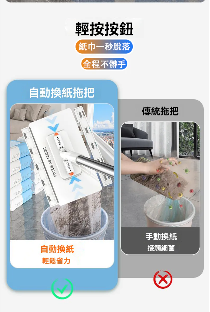 25分鐘前【台灣爆紅款 現貨秒發】3秒快速換布,免手洗超衛生,360度旋轉拖頭,深入縫隙無死角,磁磚、木地板都適用! - 【嘗鮮套餐】2入組-NT$980